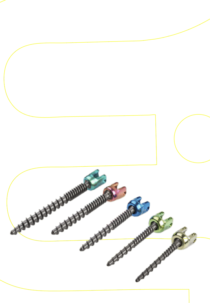 Parafuso multiaxial / parafuso monoaxial / parafuso de redução (multiaxial e monoaxial).